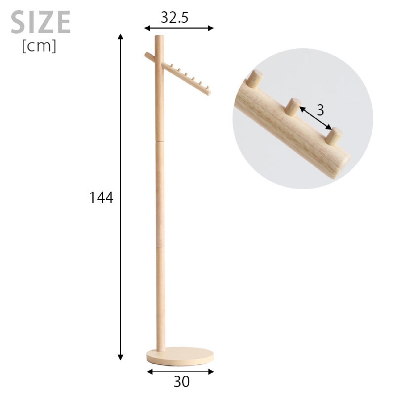 材質:フック・支柱…天然木(ラバーウッド) ラッカー塗装