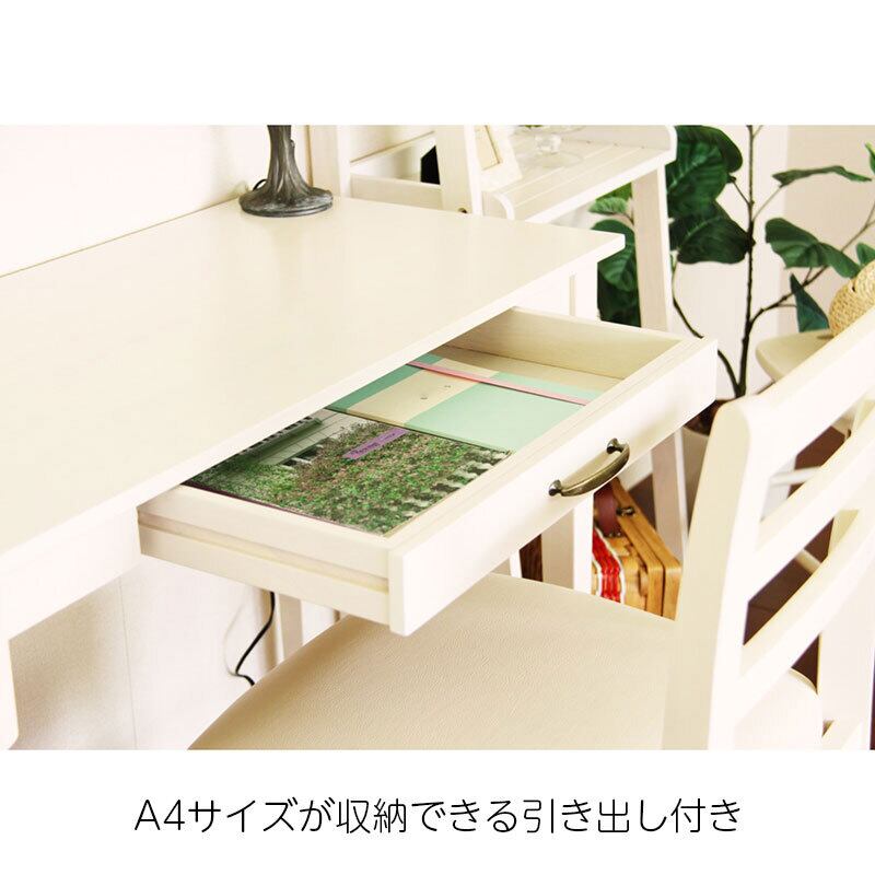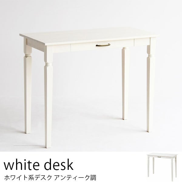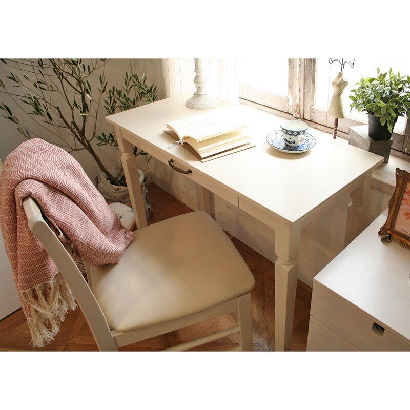 憧れの白系デスク 明るく開放的なお部屋に! アイボリー色 引き出し付き 作業机 ワークデスク ディスプレイテーブル アンティーク調 カントリー家具 天然木 ホワイト スリム おしゃれ エレガント 姫系 かわいい ワンルーム 1人暮らし